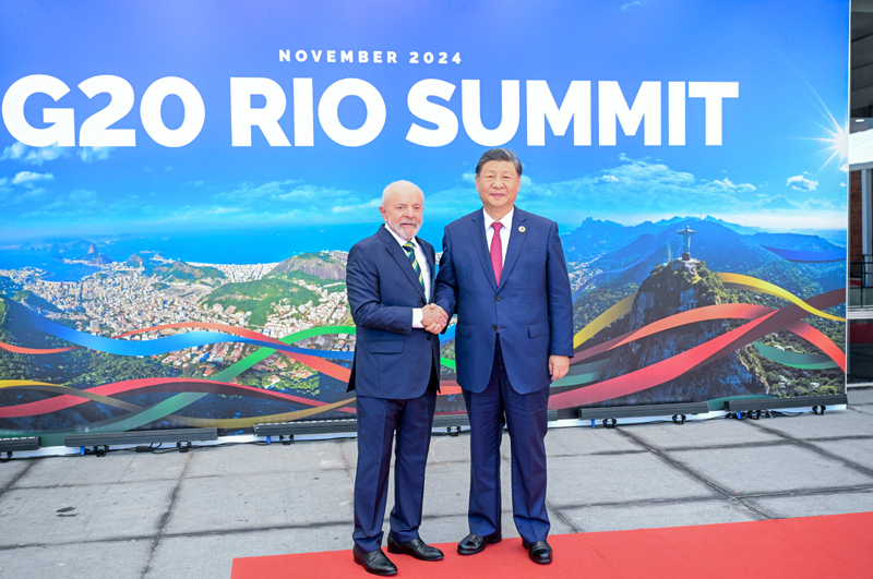 習(xí)近平指出,當(dāng)今世界百年變局加速演進(jìn),人類發(fā)展面臨的機遇和挑戰(zhàn)前所未有。作為世界主要大國領(lǐng)導(dǎo)人,我們應(yīng)該不畏浮云遮望眼,秉持命運共同體意識,扛起歷史責(zé)任,展現(xiàn)歷史主動,推動歷史進(jìn)步。中國主辦二十國集團(tuán)領(lǐng)導(dǎo)人杭州峰會時,首次將發(fā)展議題放到宏觀經(jīng)濟政策協(xié)調(diào)的中心位置,這次里約熱內(nèi)盧峰會把“構(gòu)建公正的世界和可持續(xù)的星球”作為主題,并決定成立“抗擊饑餓與貧困全球聯(lián)盟”。從杭州到里約熱內(nèi)盧,我們都致力于同一個目標(biāo),即建設(shè)一個共同發(fā)展的公正世界。