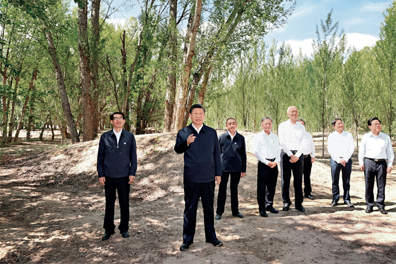 2023年6月5日至6日,中共中央總書記、國(guó)家主席、中央軍委主席習(xí)近平在內(nèi)蒙古巴彥淖爾考察,并主持召開加強(qiáng)荒漠化綜合防治和推進(jìn)“三北”等重點(diǎn)生態(tài)工程建設(shè)座談會(huì)。這是6日上午,習(xí)近平在臨河區(qū)國(guó)營(yíng)新華林場(chǎng)考察。新華社記者 謝環(huán)馳/攝